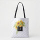 Personalize this tote with your monogram or other desired text. A bright and cheerful bouquet of yellow watercolor sunflowers cascades over a contrasting black square frame that surrounds your monogram. The background is a chic tiny polka dots pattern. This handy tote makes a lovely custom gift for friends, neighbours, co-workers or family members. It's both practical and stylish.
