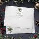 Order these customized envelopes with printed return address to match the Chickadee Christmas cards, featuring a cute watercolor chickadee perched upside down on a pine cone dangling from an evergreen branch.