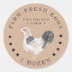 Customize your farm business with a personalized egg carton label which can also be used as promotional material in mailing. Farmhouse style with chicken illustration holding important notes on your produce and your business info in sans serif font. Visit our store for more items in this collection and contact us if you have some special requests for your business, we will be happy to help you.