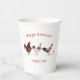 Cute and rustic farm theme birthday party paper cup featuring watercolor illustration of chickens and chick.