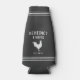 These cool personalized bottle coolers feature your family name or farm name on a charcoal grey background, with your year established and a chicken illustration. Rope stripe detailing at the top and bottom completes the design for a rustic farmhouse style look.