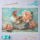 Bring farmhouse elegance to your crafting projects with this captivating decoupage tissue paper design. It features a golden-brown chicken resting in a vintage wire basket lined with delicate white lace, surrounded by lush coral peonies. The serene turquoise floral background adds a touch of charm and sophistication, making this design perfect for weddings, rustic-themed events, gift wrapping, or DIY crafts. A blend of country warmth and artistic detail, this unique tissue paper is an ideal choice for adding a luxurious and personalized touch to any project.