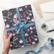 Enhance your gift-giving with our unique hand-painted Christmas wrapping paper. on navy blue. Infuse the festive spirit into your presents with rustic green pine branches, festive red berries, delicate beige flowers, and Christmas ornaments baubles in all shapes and colours. Elevate your gift presentation with this charming and one-of-a-kind wrapping paper.