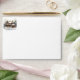 These awesome return address envelopes with a rustic home with snow and Christmas decorations, your last name and address in gold on the back flap will make addressing your Christmas moving cards just that much easier! The font is crisp and clean making them look modern yet traditional. It is so easy to make these your own. Simply select Personalize this template and type in your family name and your address. It's that easy!