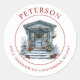 These awesome return address labels with a festive rustic home in winter with snow and Christmas decorations, your last name and address in red will make addressing your Christmas moving cards just that much easier! They are so easy to just stick on the envelope! The font is crisp and clean making them look modern yet traditional. It is so easy to make these your own. Simply select Personalize this template and type in your family name and your address. It's that easy!
