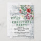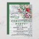 A rustic style Christmas party invitation featuring holly berries, flowers and foliage on a distressed light barn wood and solid green on the reverse side of the invite that matches the type on the front. Unique and earthy style for a holiday party invite. See the full collection of products for this design at: https://www.zazzle.com/collections/rustic_christmas_barn_wood_and_holly_berries-119642245345600858