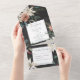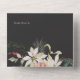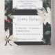 ALSO AVAILABLE WITH A QR CODE TO SCAN. This design features green pine sprigs, red berries, white poinsettias, and holiday greenery on a soft charcoal black background. A monogram on the back envelope flap completes the simple but elegant look of this all in one invitation. Personalized All-In-One invitations are a unique combination of both a beautifully printed custom invitation with an easy to tear off perforated RSVP postcard. And they are so easy to use! You simply fold, then seal the back flap with the three included clear stickers, and mail. And when your guests receive your custom invite, they just tear the perforated RSVP Card off and drop it back in the mail to you!