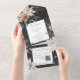AVAILABLE WITH OR WITHOUT A QR CODE. This design features green pine sprigs, red berries, white poinsettias, and holiday greenery on a soft charcoal black background. A monogram on the back envelope flap completes the simple but elegant look of this all in one invitation. Personalized All-In-One invitations are a unique combination of both a beautifully printed custom invitation with an easy to tear off perforated RSVP postcard. And they are so easy to use! You simply fold, then seal the back flap with the three included clear stickers, and mail. And when your guests receive your custom invite, they just tear the perforated RSVP Card off and drop it back in the mail to you!