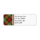 Étiquettes d'adresse de retour personnalisées avec un motif de Noël rustique classique en rouge, vert mousse, marron et vert chasseur avec des tons blancs.