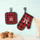 Rustic Christmas Red Buffalo Plaid Monogram Oven Mitt & Pot Holder Set