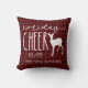 Rustic Christmas Blue Buffalo Plaid Throw Pillow - with hand lettered text that reads "holiday Cheer" with a deer and personalized with your family name. A perfect addition to your country Christmas decor. Pillow is part of a collection.
