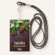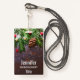 A name tag with a rustic photograph of a brown wooden table with pinecones, pine needles, snow, and Christmas ornaments. Festive and lovely.