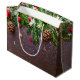 Rustic Christmas Table with Pine & Snow Large Gift Bag
