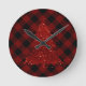 Rustic Christmas Tree Buffalo Plaid Modern Checker Round Clock