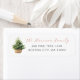 Simple rustic address label features watercolor Christmas pine tree in a basket. Paired with modern and script typography