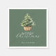 Simple rustic paper napkins in dusty green features watercolor tree in a basket with decor. Paired with modern and script typography