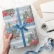 Rustic Christmas truck Trees Blue Striped Wrapping Paper