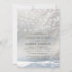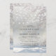 Elegant rustic christmas wedding invitations featuring a frozen white woodland backdrop, a white overlay, string twinkle lights, and a wedding template that is easy to personalize.