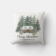 Add a personalized rustic woodland touch to your holiday home decor with this Merry Christmas pillow, featuring a cozy winter cabin nestled in the snowy pine forest. Please see the collection for more matching products.
