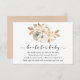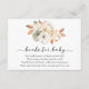 Une carte d'insertion de demande de livre pour le baby shower. Avec un feuillage citrouille et d'automne dans les tons chauds et poème : "UNE PETITE DEMANDE, NOUS ESPÉRONS NE PAS TROP DUR S'IL VOUS PLAÎT APPORTER UN LIVRE PLUTÔT QU'UNE CARTE ILS CHERCHERONT LE LIVRE, BIEN AIMÉ OU NOUVEAU S'IL VOUS PLAÎT SIGNER L INSIGNÉ AVEC UN MESSAGE DE VOUS!"
