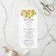 Rustic wedding program featuring watercolor illustration of orange fruit on a tree branch. All the wedding ceremony information and the wedding party's name listed on this program.