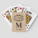 Fun playing cards set with contemporary light taupe brown faux wood grain style look with antique floral filigree banner motif. With room to personalize or customize with family name, monogram or initial.