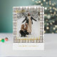 This holiday greeting card stands out with its elegant and unique design. It features a timeless "Happy Holidays" greeting printed in real gold foil, customizable to your preference, on a neutral, natural earth colours plaid pattern design. The front offers space for your family name, photo, and custom seasonal greeting, while the inside is perfect for adding a personalized seasonal message or poem. It's a stylish way to send your holiday wishes.
