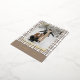 This holiday card stands out with its elegant and unique design. It features a timeless "Happy Holidays" greeting printed in real gold foil, customizable to your preference, on a neutral, natural earth colours plaid pattern design. The front offers space for your family name, photo, and custom season greeting, while the back is perfect for adding a personalized seasonal message or poem. It's a stylish way to send your holiday wishes.