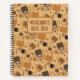 Jot down your thoughts in this notebook featuring a charming coffee mug and heart design. The warm, rustic tones and handwritten “coffee” text create a cozy, caffeine-inspired look for coffee enthusiasts. You can customize this notebook by changing the colour of the spiral binding and the inside pages. Choose from 10 different formats, including wide-ruled, sketch, grid, checklist, and recipe. Additionally, you can personalize the notebook by adding a name and a brief description, such as "Notebook," "Journal," "Recipes," or "Sketches." It makes for a fantastic gift idea!