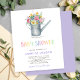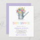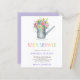 Rustic watering can with beautiful wildflowers bouquet making an elegant modern affordable gender neutral baby shower invitation. ++++ The card has a white background on the front side and a purple lilac (changeable colour) background on the reverse. It features a fancy hand-lettered script and modern contemporary typography.+++++ Ideal for an outdoor, garden spring or summer elegant country chic baby shower party. ++++++++++ PLEASE READ THIS BEFORE PURCHASING! This is a budget affordable wedding card printed on a paper sheet (each sheet has one card). ++++ For the best rapport price-quality, our advice is to choose the Semi-Gloss paper type (it is thick enough to be used for stationery) ++++ If you need envelopes, choose the ENVELOPE OPTION. +++ Double-check all the information and spelling of your text because you will receive exactly what you see - no one else will check anything before printing. ++++ This card is designed for size 4.5" x 5.6". In the case you choose another size of the card and text goes outside page, everything needs to be fixed before adding the product to cart. Please ask Live Design Service for help.