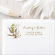 Elegant rustic return address label features watercolor cotton floral wreath and pheasant feathers. Coordinates with Rustic Cotton wedding set.