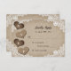 Cartes RSVP de mariage rustique vintages inspirées du burlap et de la dentelle. Personnalisez facilement ces cartes de réponse mariage campagnard rustique romantique avec des coeurs de burlap contre un burlap en détresse et arrière - plan en dentelle orné de lampes à cordes.