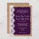 Rustic Country Dark Eggplant Purple Burlap et dentelle Imprimer les invitations de mariage. Ajoutez simplement votre propre libellé de faire-part de mariage à ce modèle. Ils sont parfaits pour les mariages campagnards rustiques et les mariages de grange.