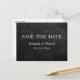 Custom rustic country wedding save the date postcards featuring a black chalkboard background. Easily personalize these rustic chalkboard wedding save the date postcards with your wedding details.