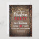 Rustic Country Christmas light bulbs dinner Party invitation card. Rustic christmas winter party invitations featuring wooden and colourful fairy lights, Personalize the details on these fun rustic country Christmas party invitations for your upcoming celebration.