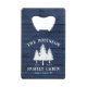 Un ouvre-bouteille à thème rustique, avec votre nom et "Cabine de famille", Ranch, Cottage ou autre texte, ainsi que sa date et son emplacement établis si désiré. Ce design personnalisé et unique présente un texte rustique de style campagnard avec une silhouette blanche de pins sur un imprimé de planches de bois aux couleurs bleues riches. Pour voir d'autres modèles comme celui-ci, n'hésitez pas à visiter ma boutique ici à "Zazzle.com/Rustic_Charm". Merci .