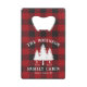 Un ouvre-bouteille à thème rustique, avec votre nom et "Cabine de famille", Ranch, Cottage ou autre texte, ainsi que sa date et son emplacement établis si désiré. Ce design personnalisé et unique présente un charmant texte rustique de style campagnard avec une silhouette blanche de pins sur un imprimé classique de plaid de buffle rouge. Idéal pour vos vacances de noël ou à tout moment de l'année. Pour voir d'autres modèles comme celui-ci, veuillez visiter ma boutique ici à "Zazzle.com/Store/Rustic_Charm". Merci .