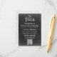 Stylized chalkboard layout with QR code on the front. Elegantly light weathered barn wood on the back. This versatile card can complement a variety of wedding designs and styles, but it's especially nice for a rustic country farm style celebration.