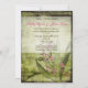 A rustic country wedding invitation with a muted pink fireweed flower. The greens and tans of this invitation would match any country or garden themed wedding. The hot pink lettering and flower petals accent the invitation. Same beautiful distressed design on the backside of the invitation.