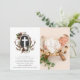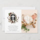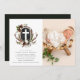 Rustic woodsy baptism party invitations featuring watercolor florals, wood slice, antlers and cross. Simple yet elegant, these invitations can be personalized for your special occasion and would make the perfect invitations for any religious event.