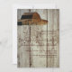 Une simple invitation au mariage campagnard rustique avec une grange rustique en haut et un arrière - plan en bois de grange en détresse.