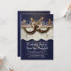 Horseshoe engagement party invitation with navy barn wood, vintage lace and baby's breath flowers