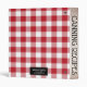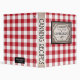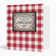 A charming, rustic country kitchen design featuring classic red and white buffalo check, and a personalized label.