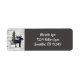 This rustic address label design features a silhouette moose standing with a pine tree and country decor set against a faux birch tree background.