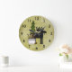 ~Rustic Country Mountain Silhouette Moose Wall Clock with Green Background.
