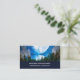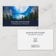 A business card with a beautiful photograph of a pleasant and tranquil nature scene. Vibrant green forest in the front and shadowy blue mountains in the back. With a dreamy cloudy white sky. Great for environmental and outdoorsy professions.