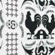 Black and white country rustic decor pattern featuring back to back roosters and a barn with additional floral style (floralia) details by Holiday Hearts Designs.