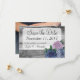 Bonus on the back! This Save The Date card features a custom template on the back side to serve as a keepsake photograph for family and friends. Just replace the stock photo with your own high-resolution image, then scale or move it into position. If you prefer no photo, simply delete the photo layer, and the coordinating wood pattern will show instead. If you would like a totally blank background without the photograph or the wood (to add more text, for example), just delete the wood layer also.
