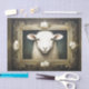 Primitive Painting featuring a lamb in a frame, in the style of primitivist art, illusory portrait, and farmhouse.