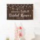 Country chic bridal shower banner featuring a rustic barn wood background, string twinkle lights and a bridal party text template. Click on the “Customize it” button for further personalization of this template. You will be able to modify all text, including the style, colours, and sizes. This is perfect for a rustic, country, western, ranch, barn, vineyard or backyard wedding bridal shower.